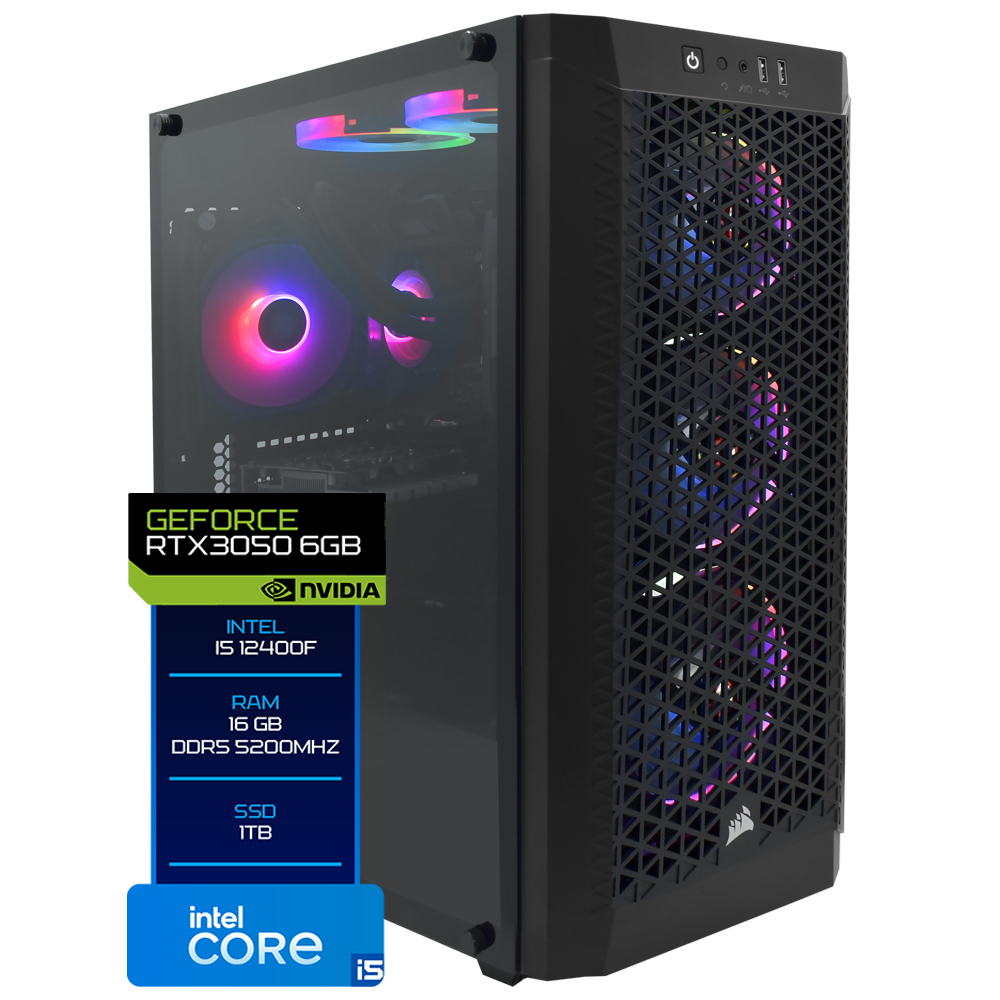 PC MONTADO GAMER INTEL CORE I5 2.5GHZ/16GB/1TB SSD/VGA RTX3050 6GB/LINUX PRETO