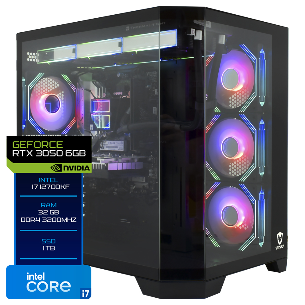 PC MONTADO GAMER INTEL CORE I7 3.6GHZ/32GB/1TB SSD/VGA RTX3050 6GB/RGB/LINUX PRETO