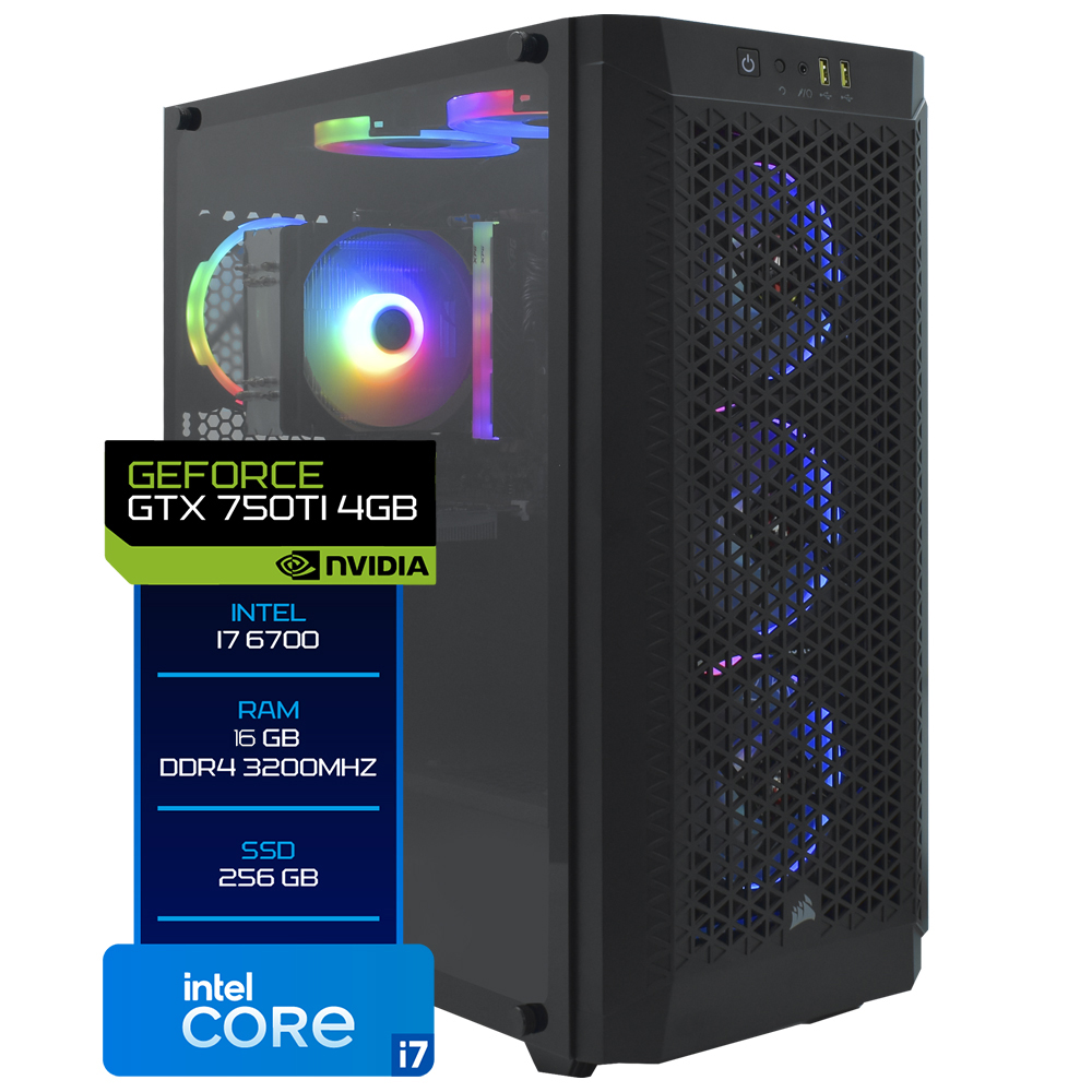 PC Montado Gamer Intel Core i7 6700 de 3.4GHz 16GB de RAM / 256GB SSD / GeForce GTX 750TI 4GB - Preto