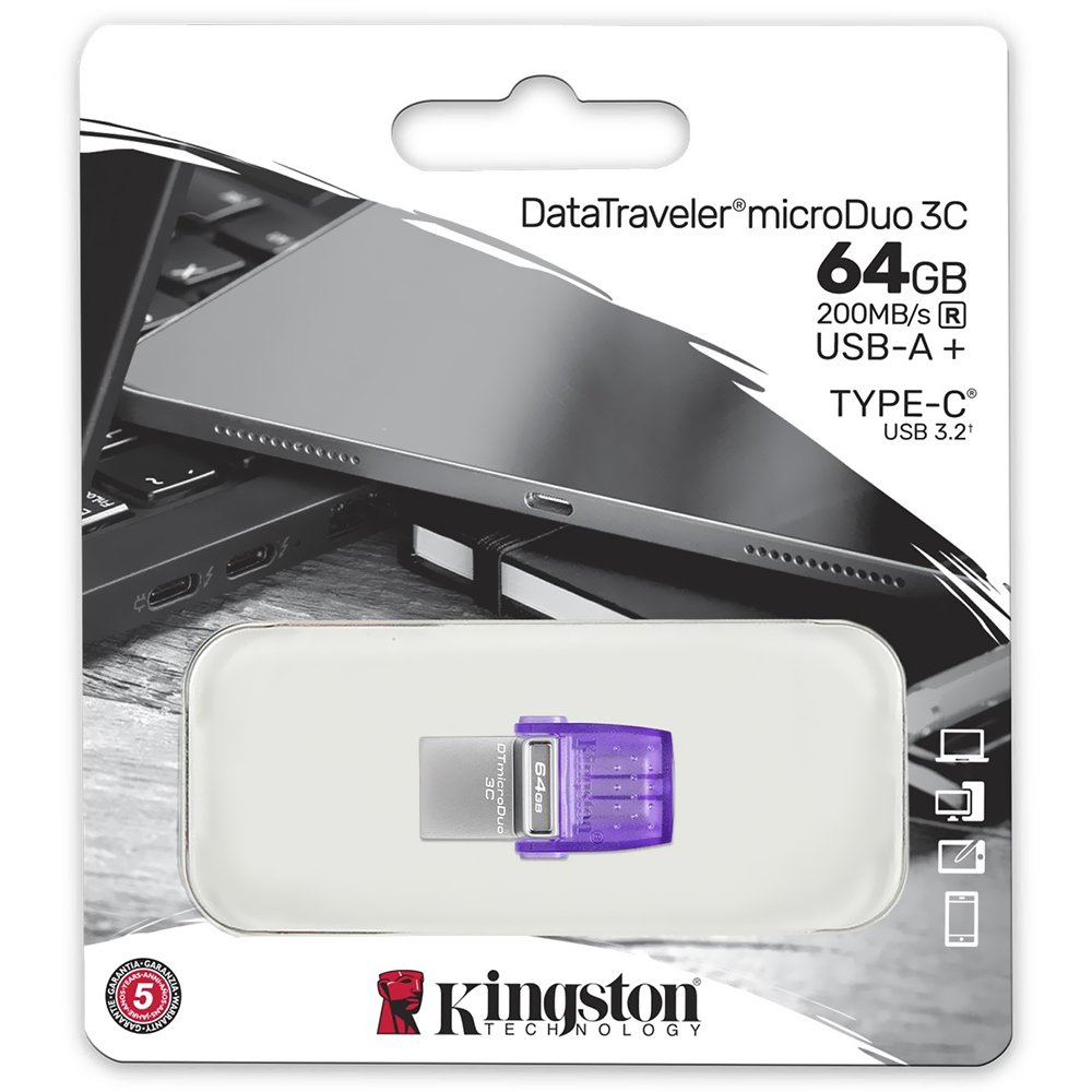Descubra a unidade flash DataTraveler microDuo 3C, a solução perfeita para otimizar seus dispositivos. Com sua interface dupla compatível com USB Type-C e portas USB tradicionais, você pode liberar espaço em seu smartphone ou tablet em um instante. Esse pequeno dispositivo oferece até 64GB de armazenamento adicional, perfeito para armazenar fotos e vídeos. Além disso, sua rápida velocidade de transferência de arquivos permite que você mova seus dados rapidamente.