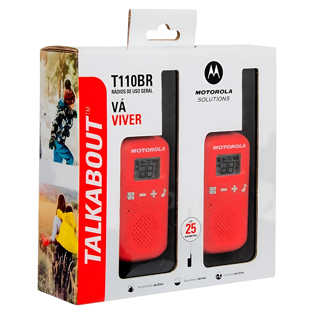 Walkie Talkie Motorola T110 FRS / GMRS / 16 Milhas - Preto / Vermelho | MOTOROLA | Visãovip Informática