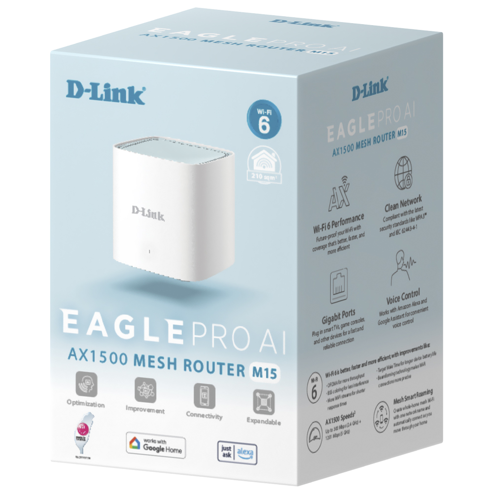 Roteador D-Link M15 Eagle Pro AI Mesh AX1500 Dual Band / 2.4GHz / 5GHz / 1500Mbps