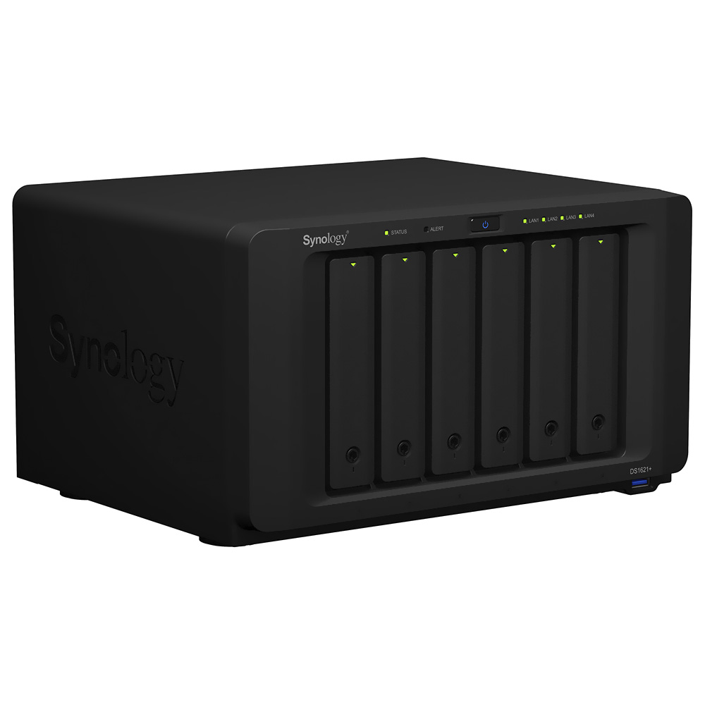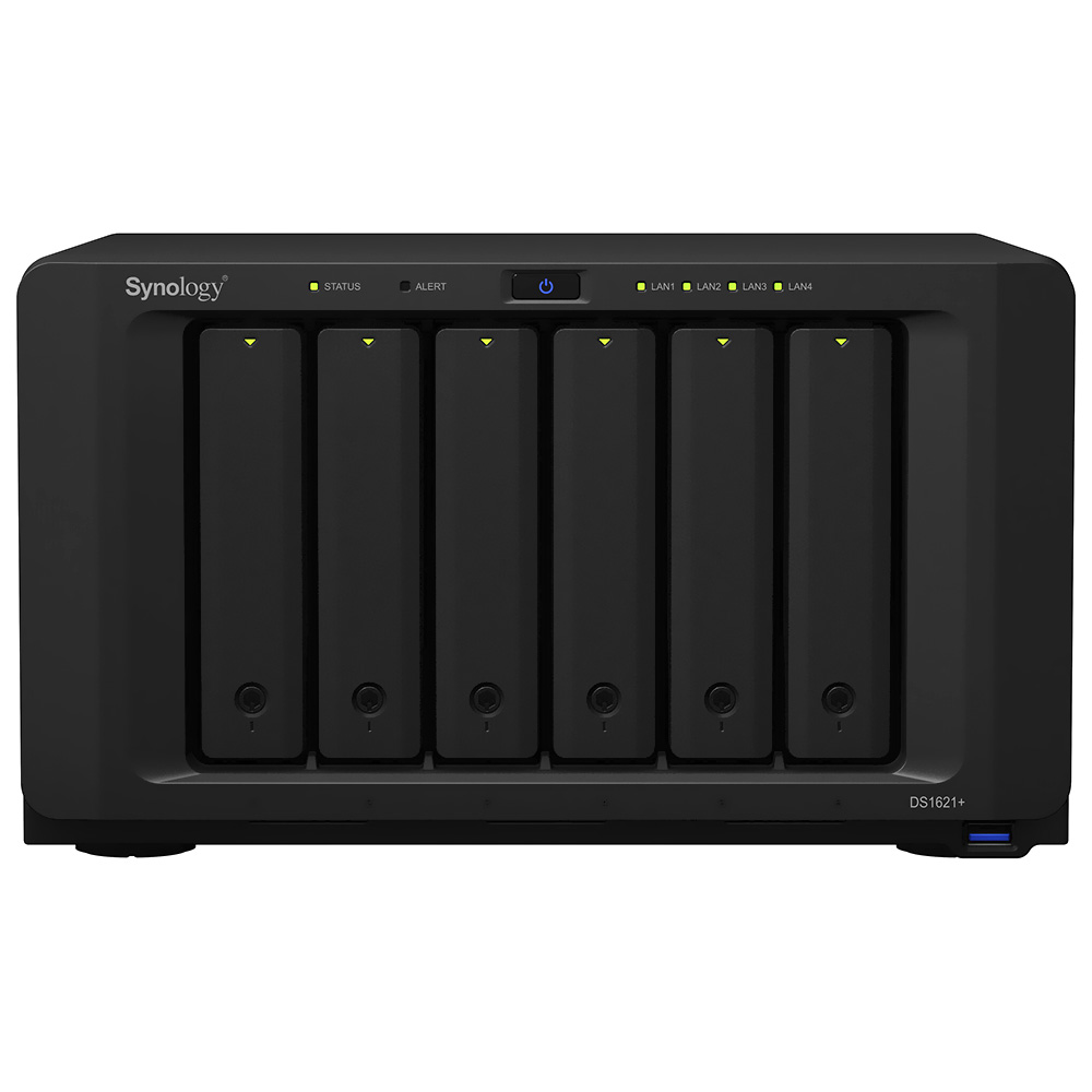 Servidor Nas Storage Synology DiskStation DS1621+ AMD Ryzen V1500B de 2.2GHz / 4GB de RAM / 6 Baias / USB / LAN - Preto