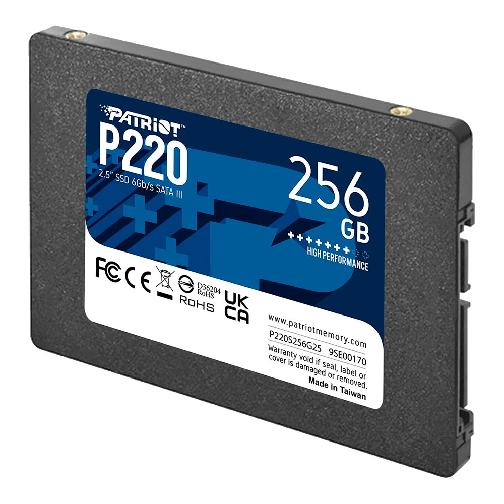 O SSD Patriot P220 que você precisa. Vem com a unidade de estado sólido SATA III de 2,5". Possui uma capacidade de 256 GB e incríveis velocidades de leitura/gravação de 550 MB/s e 490 MB/s respectivamente, acorde instantaneamente do modo de hibernação e execute aplicativos com eficiência.