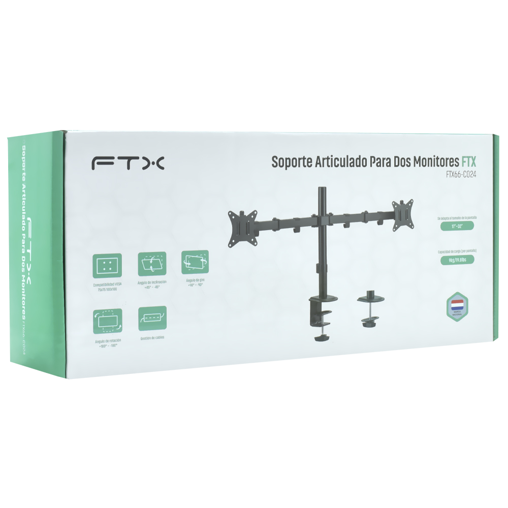 Eleve sua experiência visual com o Suporte Articulável FTX66-C024, o acessório que oferece flexibilidade, funcionalidade e estilo aumentando o conforto no espaço laboral ou entretenimento, adaptando-se facilmente às suas exigências, proporcionando ajustes precisos tornando cada ângulo ideal. Sua capacidade de 9 kg por carga garante equilíbrio até mesmo nas maiores telas, além de complementar qualquer ambiente moderno. Perfeito para otimizar as configurações como oficinas e gaming.