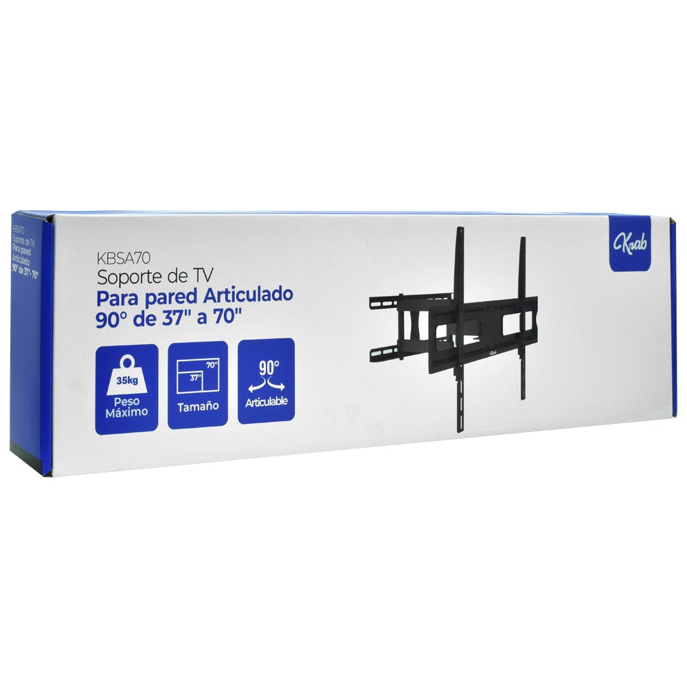 O suporte articulado Krab KBSA70 foi projetado para oferecer uma solução robusta e flexível para TVs de 37" a 70". Com uma capacidade de carga máxima de 35 kg, permite o ajuste fácil do ângulo de visão graças à sua ampla faixa de giro de 90° a 90°. Fabricado em chapa metálica de 1.5 mm de espessura, garante uma estrutura forte e durável que segura sua TV com segurança. Otimize seu espaço e desfrute de uma visualização confortável de qualquer ângulo.