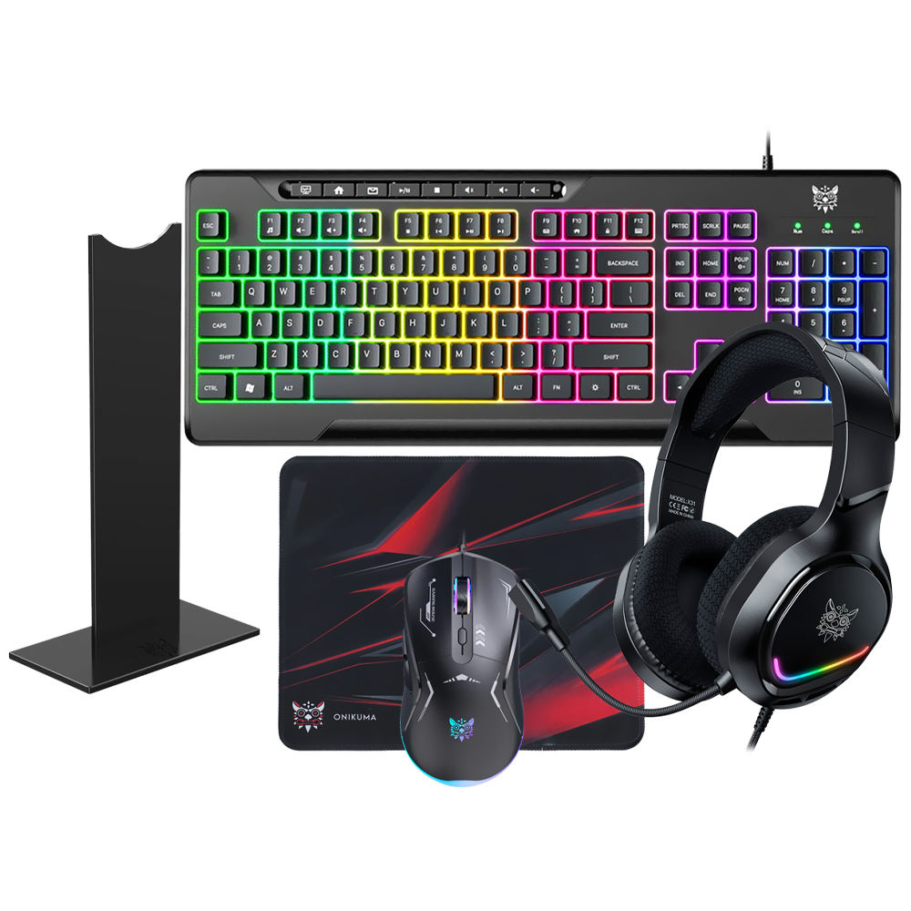 Kit Gamer Onikuma TZ5008 Teclado + Mouse + Muosepad + Fone / RGB / Inglês - Preto | ONIKUMA GAMING | Visãovip Informática