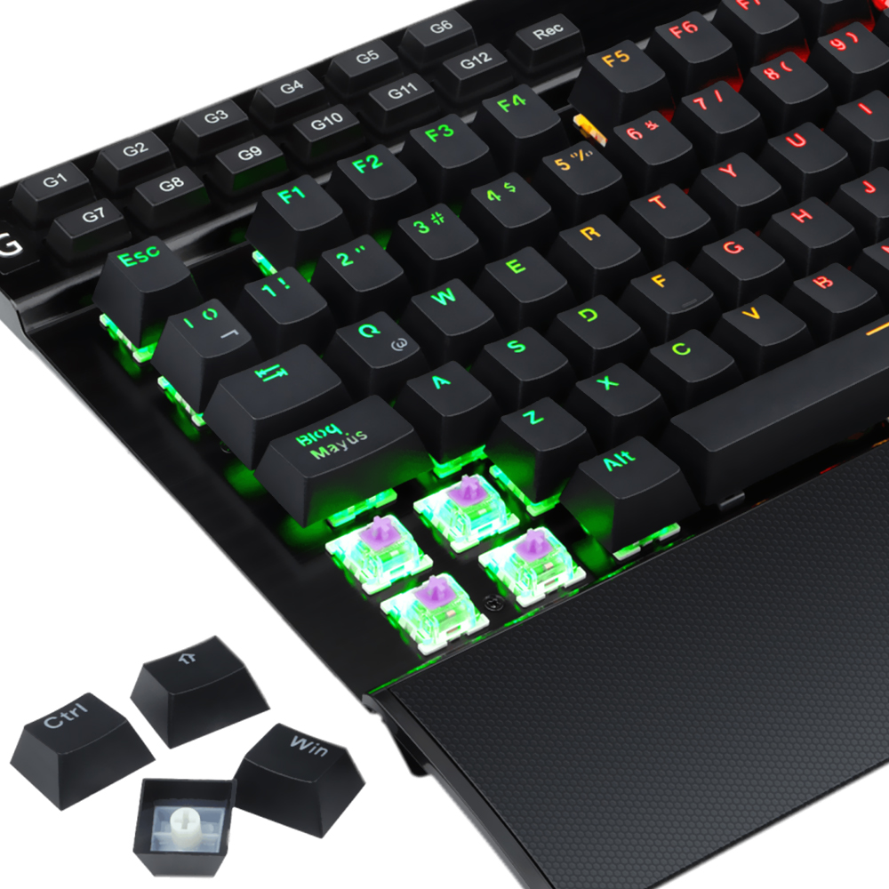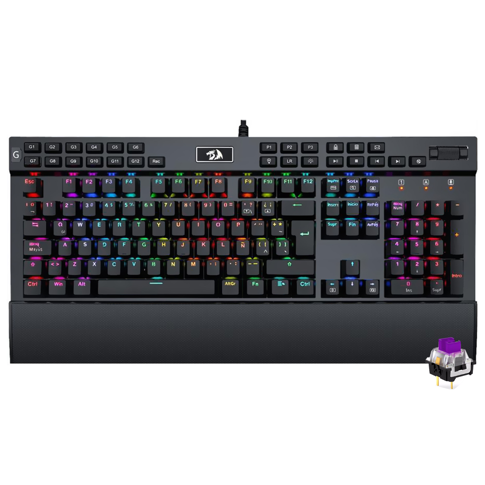 Projetado para gamers que buscam precisão e resistência, este teclado mecânico conta com switches Purple que oferecem uma resposta tátil equilibrada. Sua estrutura com teclas de dupla injeção assegura durabilidade e uso prolongado sem desgaste visível. Além disso, incorpora funções essenciais como a desativação da tecla WIN para evitar interrupções durante o jogo e proteção contra derramamentos para maior segurança. A iluminação RGB integrada adiciona estilo e melhora a visibilidade.