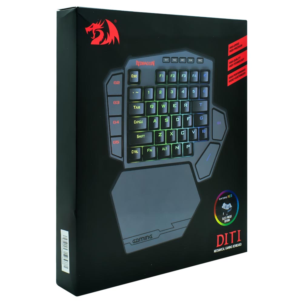O Diti K585 tem as teclas mais úteis em um formato compacto e portátil. Ergonomicamente projetado com uma seção de descanso para pulso removível que oferece um excelente suporte para uso confortável, integra 7 teclas macro programáveis e 5 modos de iluminação de fundo RGB que pode ser selecionado com 16.8 milhões de cores e com efeitos incríveis.