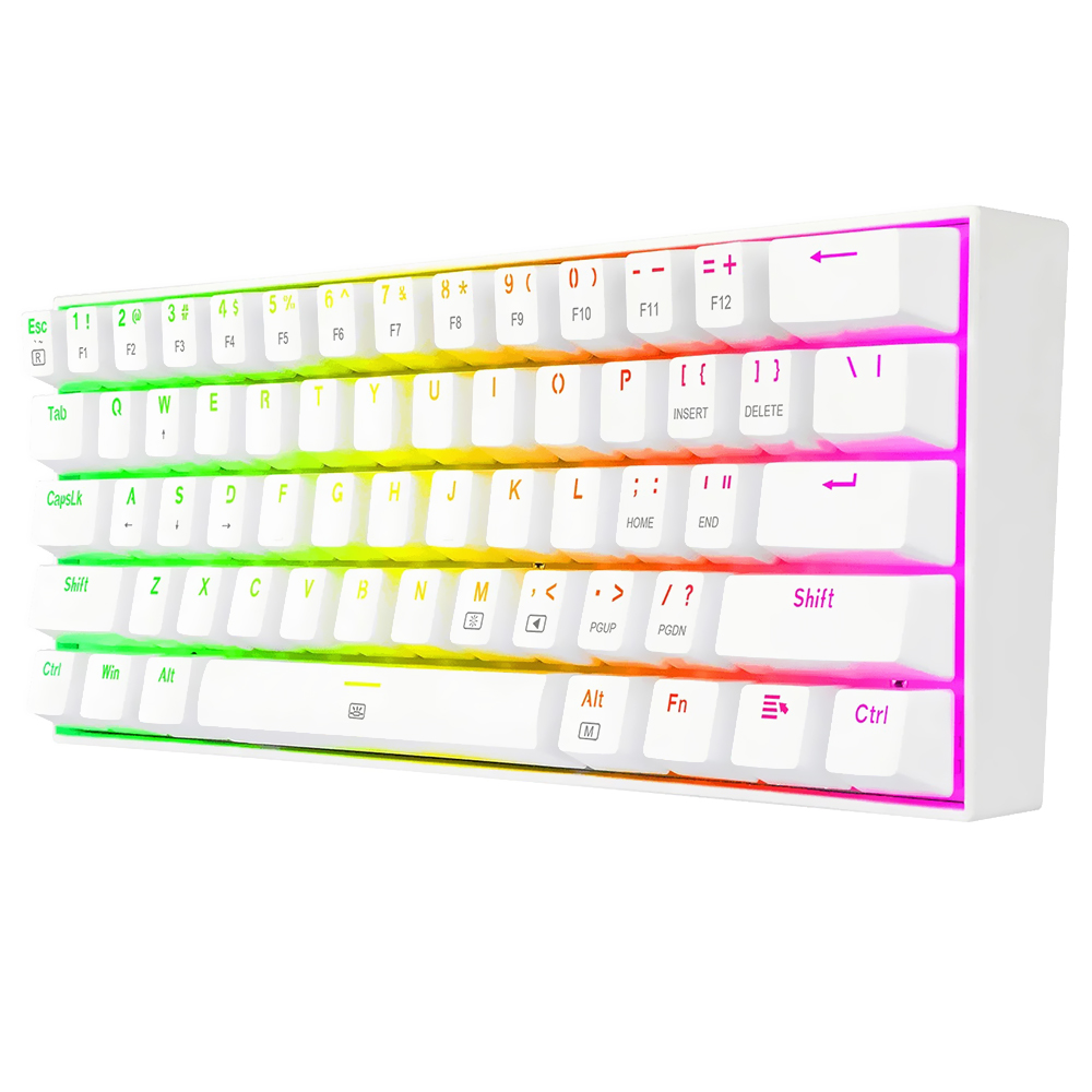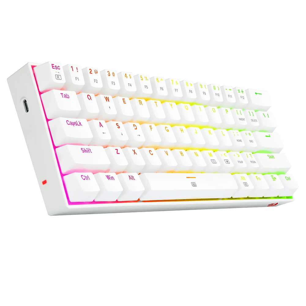 O Redragon 630W-RGB é um teclado mecânico compacto e robusto. Tem uma durabilidade de 50 milhões de cliques, resistente a poeira e respingos de água. Oferece um sistema de retroiluminação com 13 perfis atraentes e dinâmicos que você pode alternar entre rápida e facilmente.