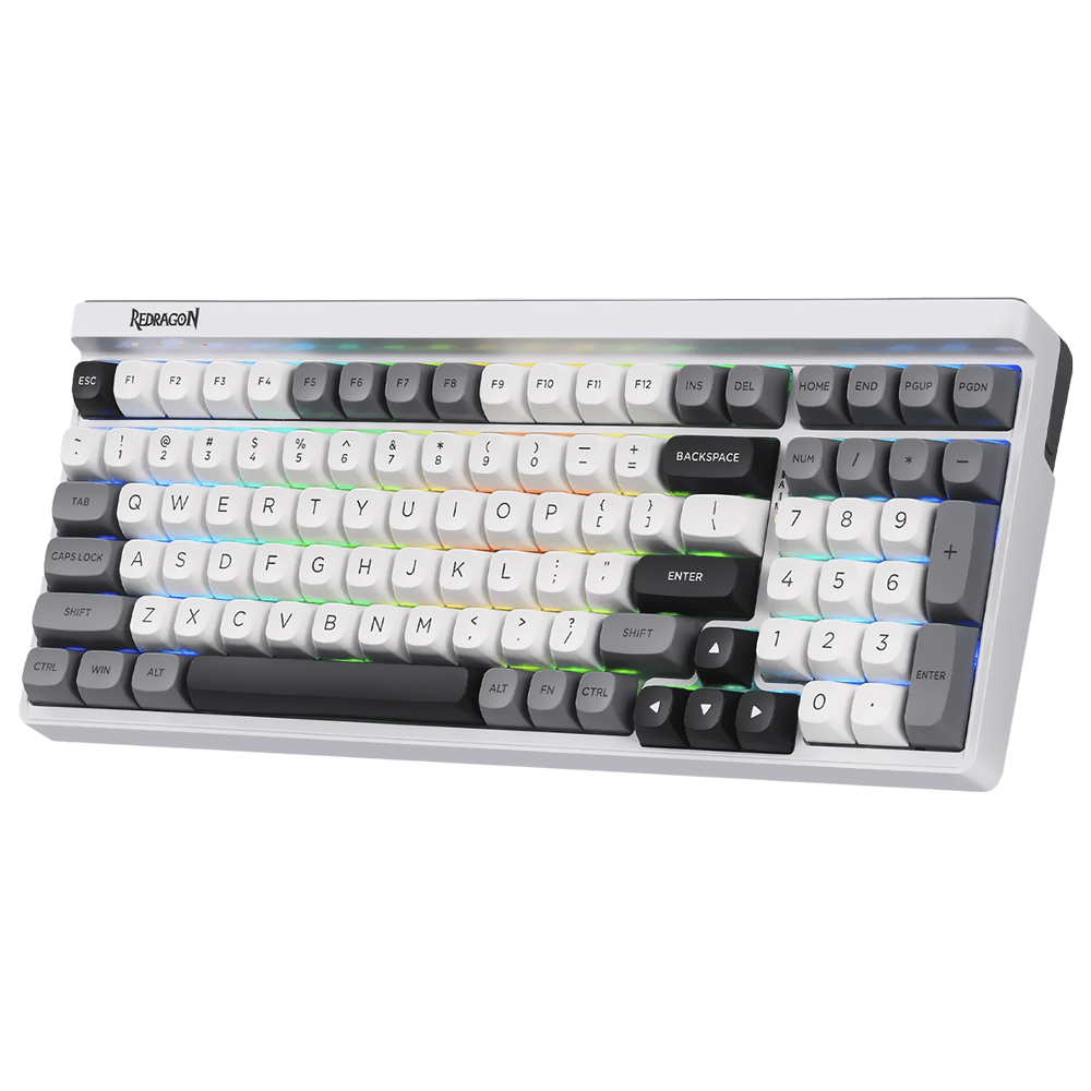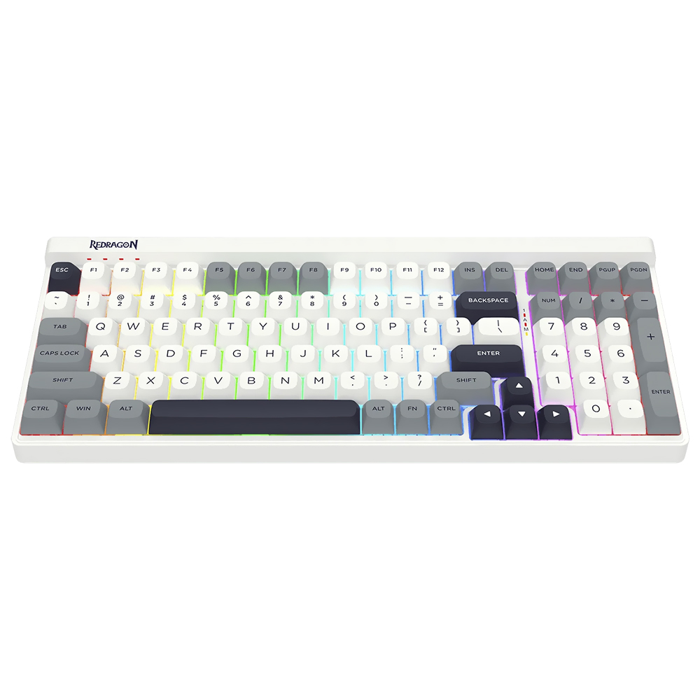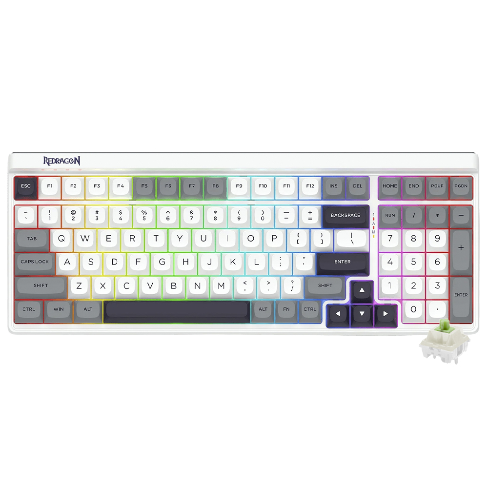 O Redragon Garen Pro combina funcionalidade e estilo em um teclado mecânico de 100 teclas, ideal para jogos e tarefas diárias. Seus switches Green Mint Mambo oferecem uma resposta tátil refrescante com um som envolvente que aprimora cada pressionamento. Graças ao design hot-swappable, personalizar sua experiência nunca foi tão fácil. Sua conexão sem fio múltipla e a iluminação RGB ajustável completam um pacote perfeito para quem exige desempenho, estética e versatilidade.