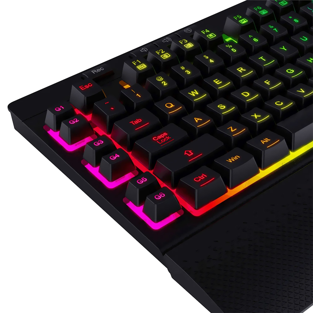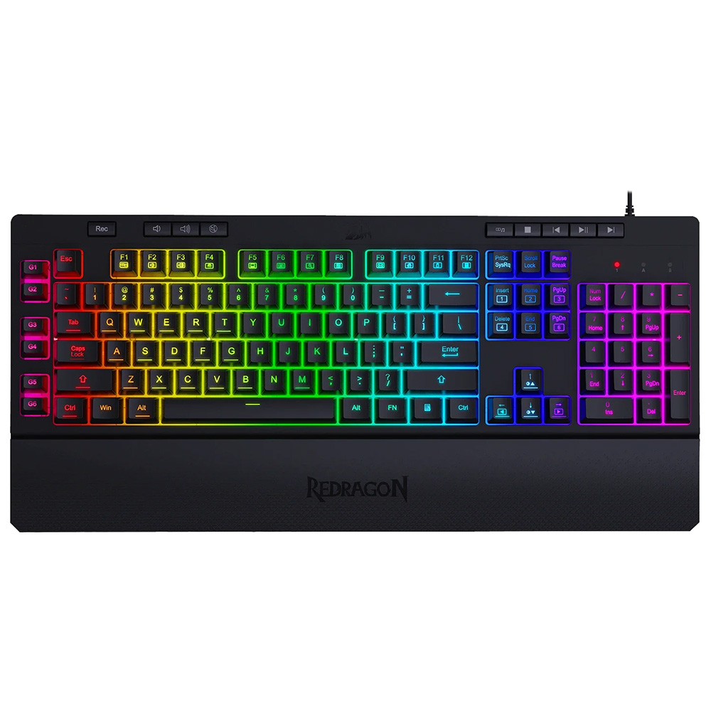 Projetado para jogadores entusiastas, o teclado Redragon Shiva oferece desempenho total com 6 teclas de macro programáveis para uma experiência personalizada. As teclas anti-ghosting permitem a operação simultânea, garantindo respostas rápidas e precisas durante o jogo. Por meio de um cabo de malha durável, descanso de pulso removível e iluminação de fundo RGB dinâmica e atraente, este teclado oferece conforto e estilo para levar seus jogos a um novo patamar.