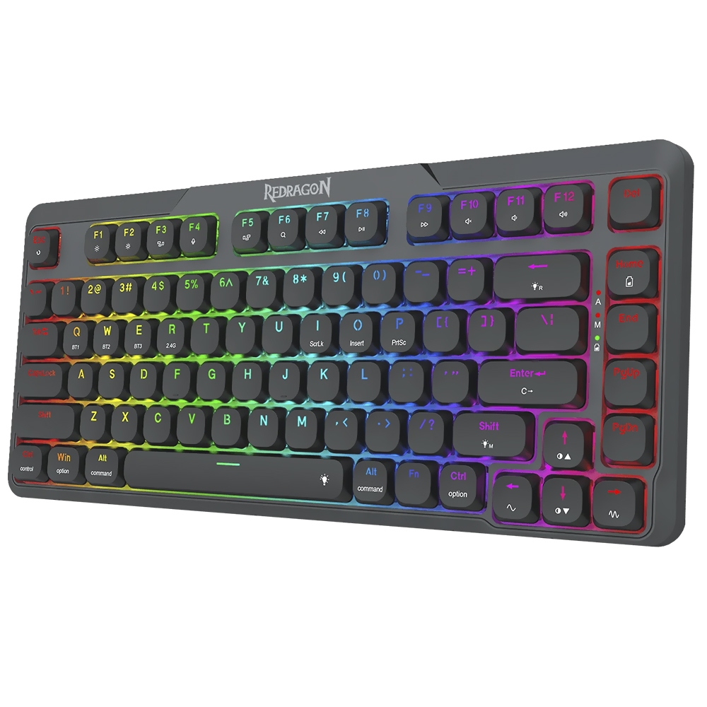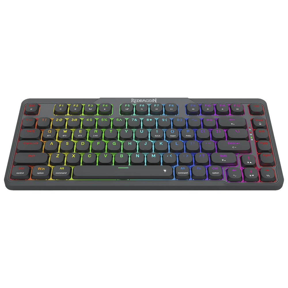 Descubra o poder do Redragon Aether Pro. Um teclado ultrafino que redefine a experiência de jogo graças ao seu design elegante e compacto. Seu tamanho de 75% maximiza o espaço na área de trabalho sem sacrificar nenhuma funcionalidade, permitindo que você se mova com agilidade e precisão. Apesar de seu design ultrafino, ele é construído a partir de materiais de alta qualidade para garantir durabilidade e resistência ao uso intensivo. Leve seus jogos para o próximo nível usando o Aether Pro.