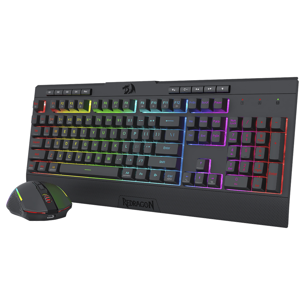 Teclado + Mouse Gamer Redragon Essentials S151-PRO Wireless / RGB / Inglês - Preto | REDRAGON | Visãovip Informática