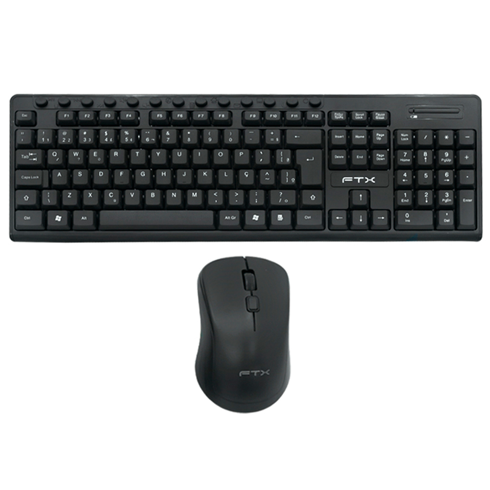 TECLADO + MOUSE WIRELESS FTX KM250 ESPANHOL PRETO | FTX | Visãovip Informática