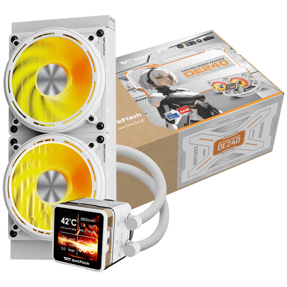 Water Cooler Para Processador darkFlash Explore Series DE240 240MM ARGB - Branco | DARKFLASH | Visão Vip Informática