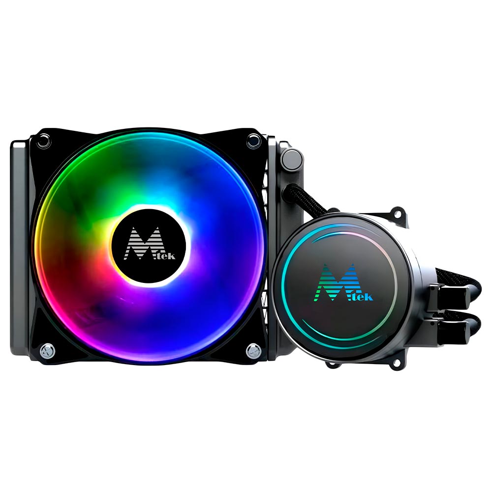 O cooler líquido para processador Mtek MWC-120MM foi projetado para otimizar o seu sistema. Está equipado com uma ventoinha de 120mm que proporciona desempenho eficiente, um corpo de alumínio que garante durabilidade, um eixo central de aço inoxidável que aumenta sua vida útil e uma base de cobre puro que maximiza a eficiência da dissipação de calor. Além disso, oferece uma incrível iluminação ARGB, este cooler da Mtek leva seu sistema ao próximo nível de potência e estética.